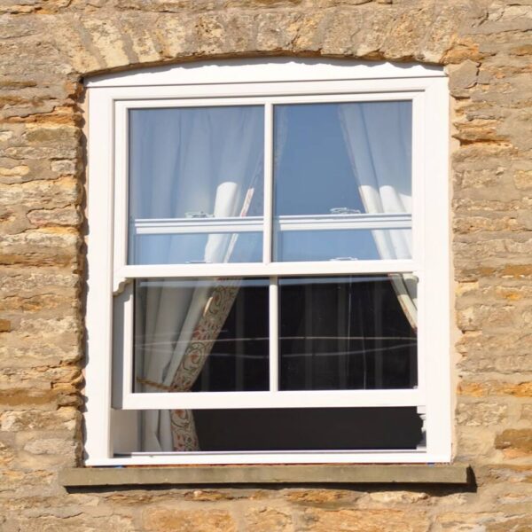 Vertical slider windows move up and down within the frame, offering a classic appearance with modern uPVC performance.